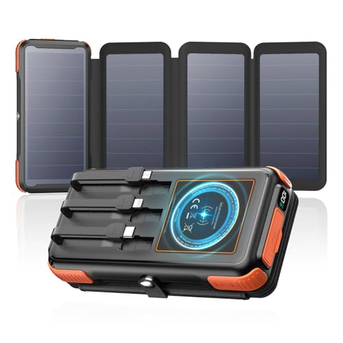 Viel Komfort für Ihre Freizeit! Mit 3 integrierten Kabeln (USB-C, Lightning und Micro-USB), zwei USB-Ausgängen und einem 15W Wireless Ladepad können Sie bis zu 6 Geräte gleichzeitig aufladen. Keine zusätzlichen Eingangs- oder Ausgangskabel erforderlich!
