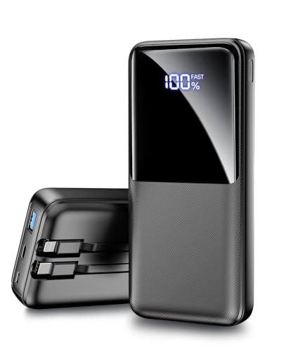 Power Bank 15000mAh mit 3 Anschlüssen & 2 integrierten Kabeln, USB C Schnellladung Powerbank Externer Akku Kompatibel mit iPhone 17 16 15 14 13 Android